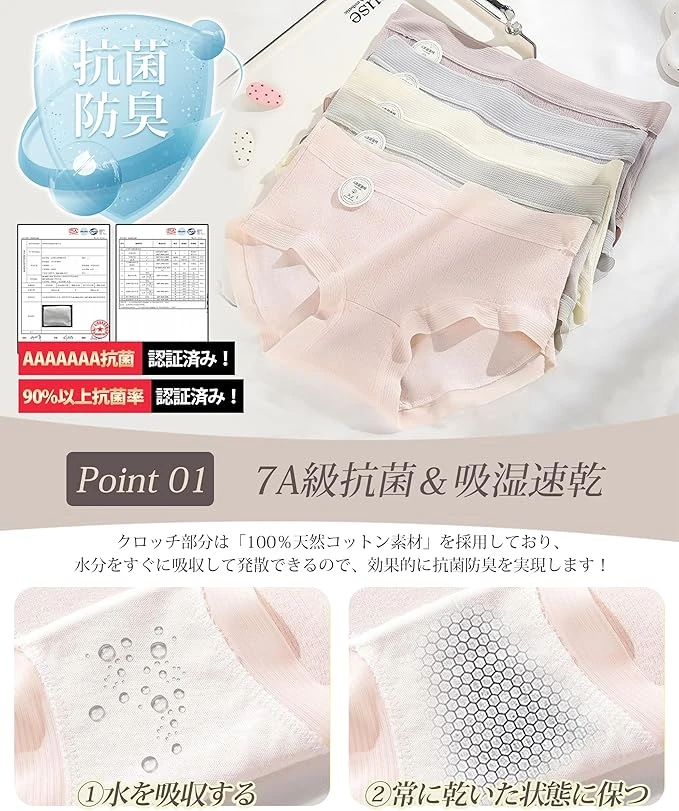 (Certified AAAAAAA Grade Antibacterial & Moisture Wicking & Quick Drying) SLEEPSINERO panties for women are made of 100% natural cotton material for the crotch portion to quickly absorb and evaporate moisture, so they effectively achieve antibacterial and deodorizing. Certified by international third-party testing institutes to "over 90% antibacterial rate." The main body uses 95% cotton and 5% spandex for good moisture absorption and breathability. The women's shorts also feature breathable mesh construction to further improve moisture dissipation. It is always dry and comfortable to wear, and can be worn all year round
