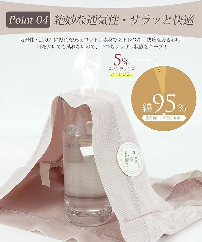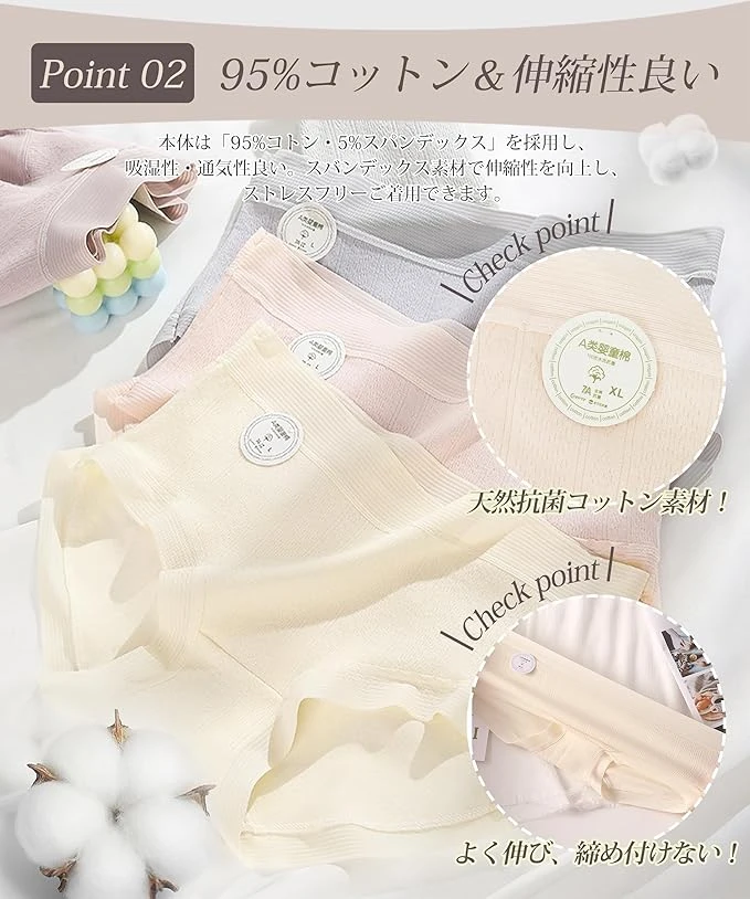 Material: Main body: 95% cotton, 5% spandex. ◎Crotch: 100% cotton
