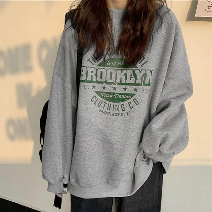 Áo sweatshirt dáng suông thoải mái với thiết kế thời trang và khả năng che phủ cơ thể tuyệt vời. Kiểu dáng rộng rãi không bó sát là một điểm thu hút. Phần tay áo rộng cũng làm tăng thêm vẻ dễ thương. Một chiếc áo dễ dàng phối với những món đồ hiện có của bạn.