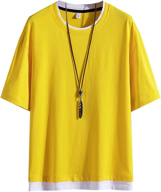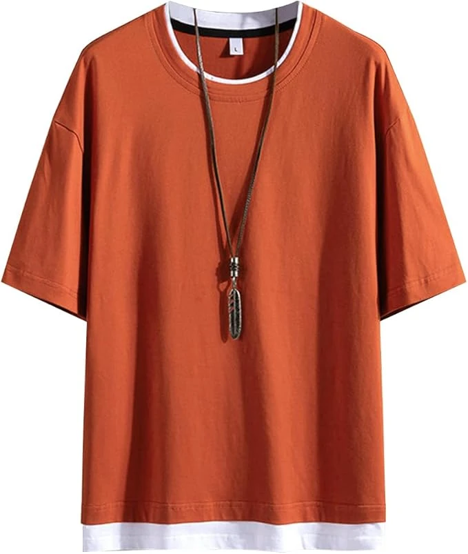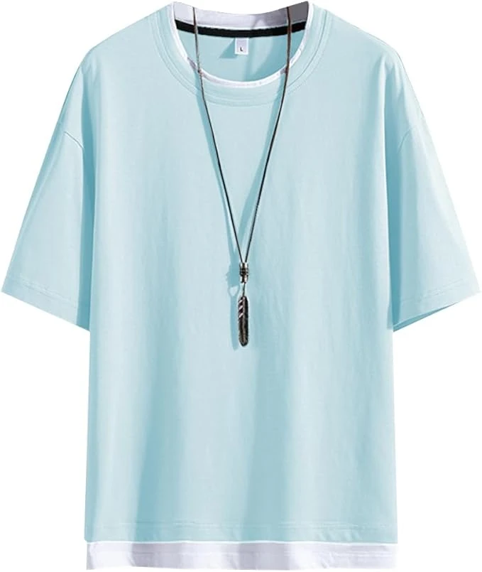 Men's summer t-shirt, short-sleeved, plain, layered look, plus sizes, loose fit.