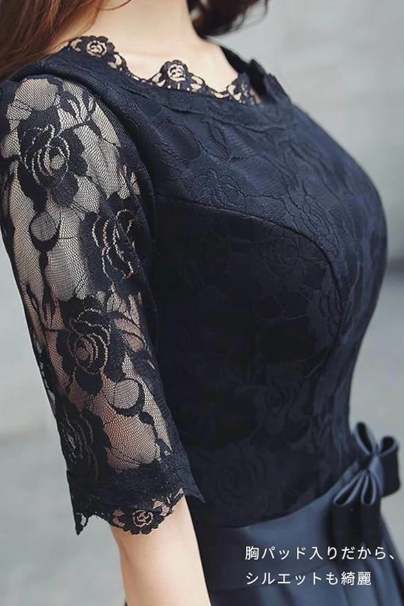 A neat and tidy party dress with a collar (Luxurious quality above the price) Uses luxurious premium satin fabric with a beautiful natural luster. (This is a good quality that you won't find in a flirty chiffon dress! The see-through sleeves are also very nice. It has an elegance that you won't believe at this price. Gorgeous and practicality: The high waist design makes it easy to show off your style and eat. (o´◡`)Whether it's a wedding, a party or a time with the family, this dress will make you shining in any occasion
