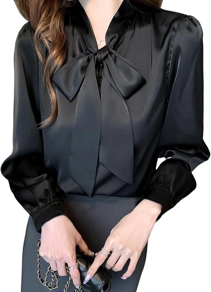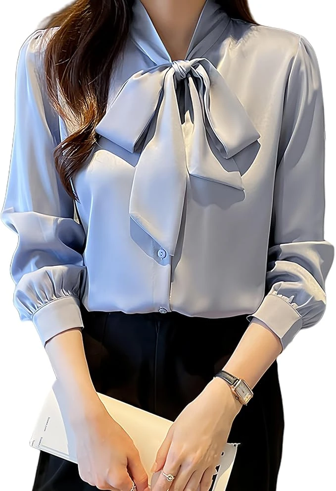 Introducing a long sleeve shirt with a ribbon tie made of elegant and soft chiffon material. The V-neck design also makes your face look neat. The 3-point combination of a neat stand-up collar and tuck processing creates a three-dimensional feel on the entire body, making it an intelligent and elegant lady. The fabric has a slimming effect regardless of your body type