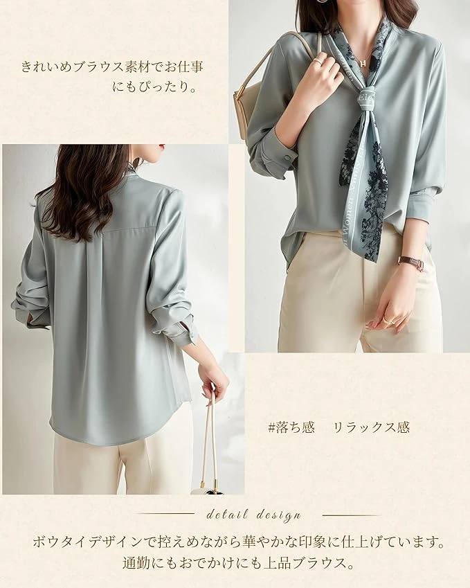The bowtie design gives it a subtle yet glamorous impression. Elegant blouse for commuting to work or going out
